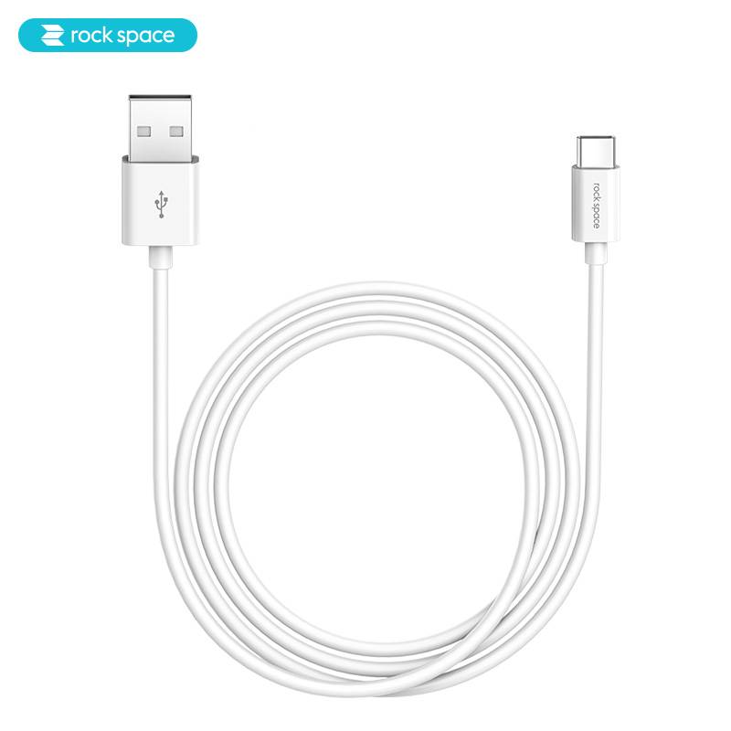 CABO S08 DADOS E CARREGADOR TIPO-C 2A - 100CM ROCK SPACE (BRANCO)