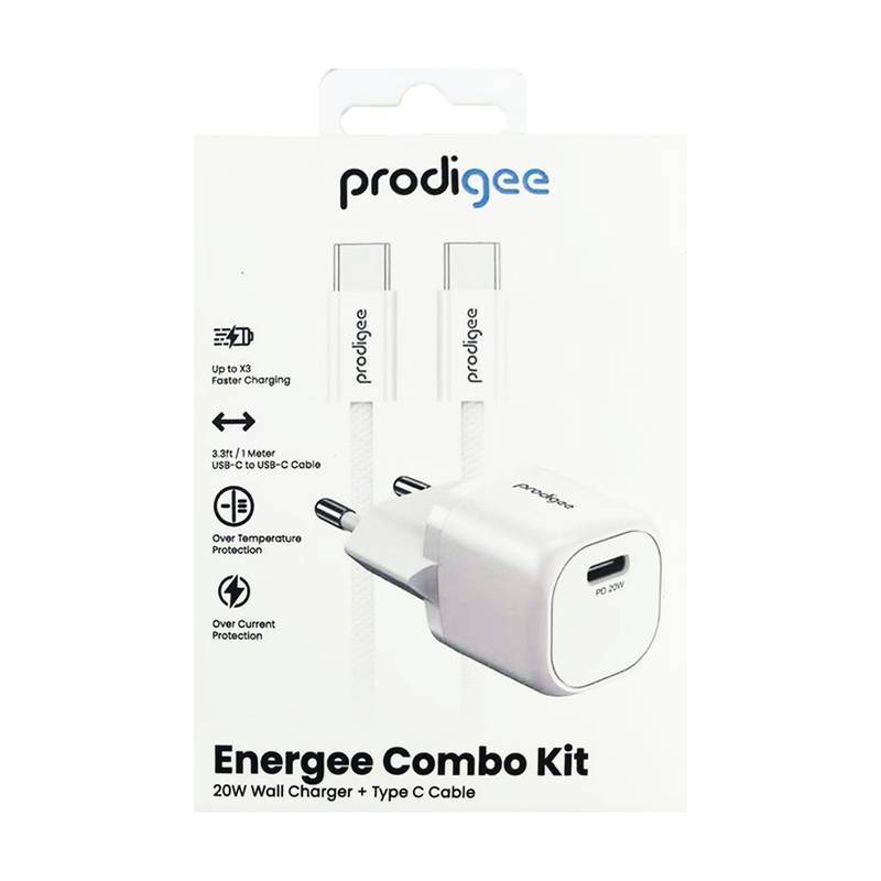 Carregador Prodigee Energee Combo Kit – 20W + Cabo USB-C para USB-C (1 Metro)